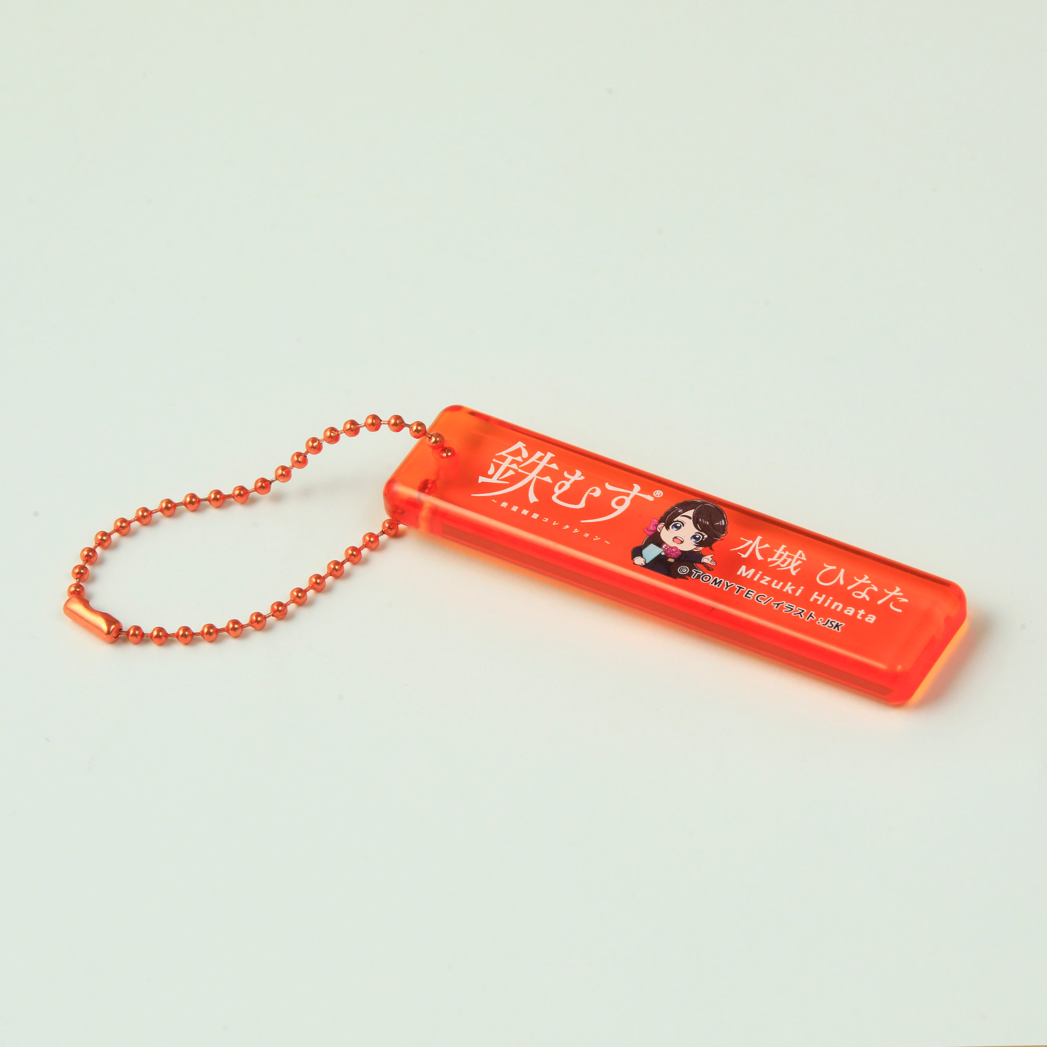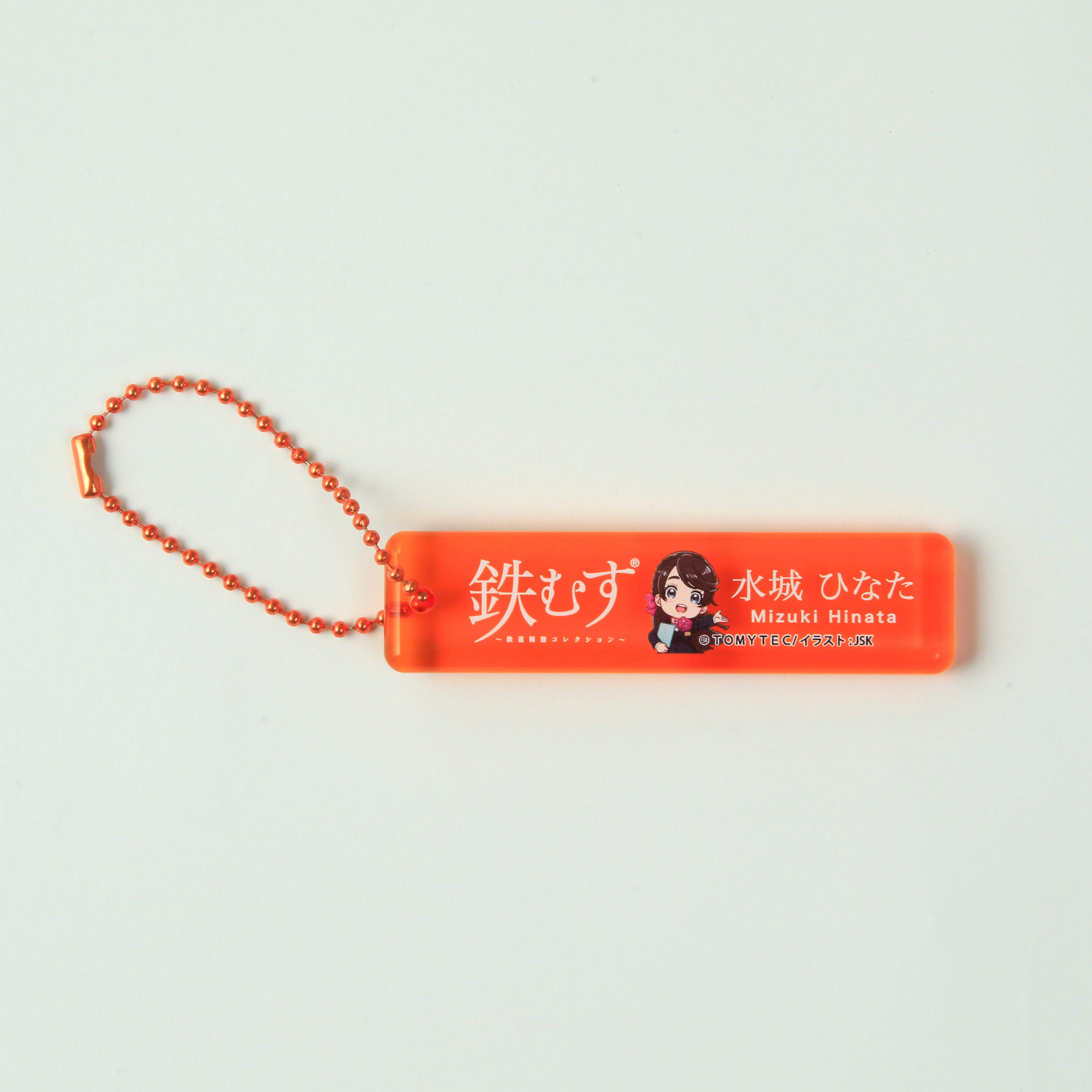 鮮やかなオレンジカラーが目を引く、アクリル製のキーホルダー。